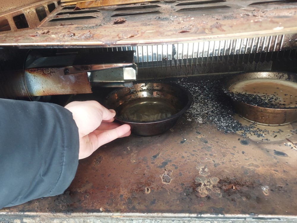 Přibližně po dvou hodinách je vhodné odpadlou štěpku spolu s vodou vylít a dát do misky novou vodu. Vodu nalijeme také do misky, kam odkapává tuk z uzenin. Je to proto, aby se zchladil a nešli z něj výpary do připravovaného masa. Kromě toho díky vodě se tuk nebude na misce připalovat a vy si ušetříte práci s drhnutím misky.