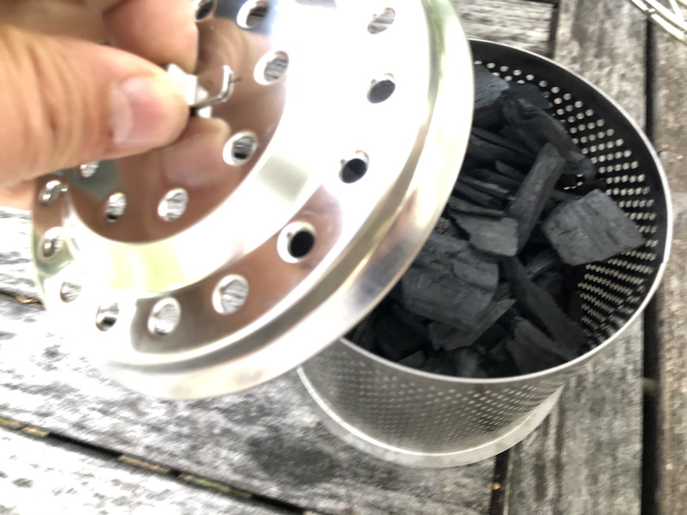 Uhlí se sype do nerezového zásobníku, který je umístěn uprostřed grilu. Důvodem proč gril nekouří je víko zásobníku, které žhavé uhlí chrání před odkapávajícím tukem z masa.