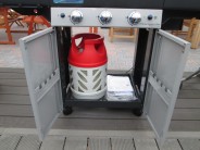 Dobrý den, děkujeme za váš dotaz. Pokud byste chtěla mít plynovou láhev schovanou ve skříňce pod grilem, doporučujeme použít 7,5 kilovou kompozitní plynovou láhev, případně klasickou ocelovou plynovou bombu o váze 5,6 kilogramů. V případě, že budete mít schovanou ve skříňce pod grilem, je třeba pamatovat, že gril s bombou uvnitř se nesmí převážet a obecně se doporučuje při jakékoli složitější manipulaci s grilem bombu odpojit. Pokud chcete mít plynovou láhev vedle grilu, můžeme vám doporučit i větší, desetikilovou kompozitní plynovou láhev. Kromě láhbr je třeba ke grilu přikoupit také speciální připojovací sadu, bez které by plynová bomba nešla ke grilu připojit. Co se týče způsobu dodání, z bezpečnostních důvodů není možné ocelové a kompozitní plynové bomby zasílat poštou nebo prostřednictvím přepravních firem. Možný je pouze osobní odběr u nás na pobočce. V případě vašeho zájmu o plynové bomby, nebo kdybyste měla nějaké další dotazy, neváhejte se na nás obrátit. Pro tyto účely je vám k dispozici zákaznická linka, dotazy můžete posílat také přes kontaktní online formulář anebo nás můžete navštívit v naší kamenné prodejně v Tachlovicích (mezi Zličínem a Rudnou u Prahy) na adrese Karlštejnská 97, kde máme grily Campingaz i oba druhy plynových bomb vystavené a kde vám bude k ruce jeden z našich odborných poradců, který zodpoví každý váš dotaz a se vším vám pomůže.