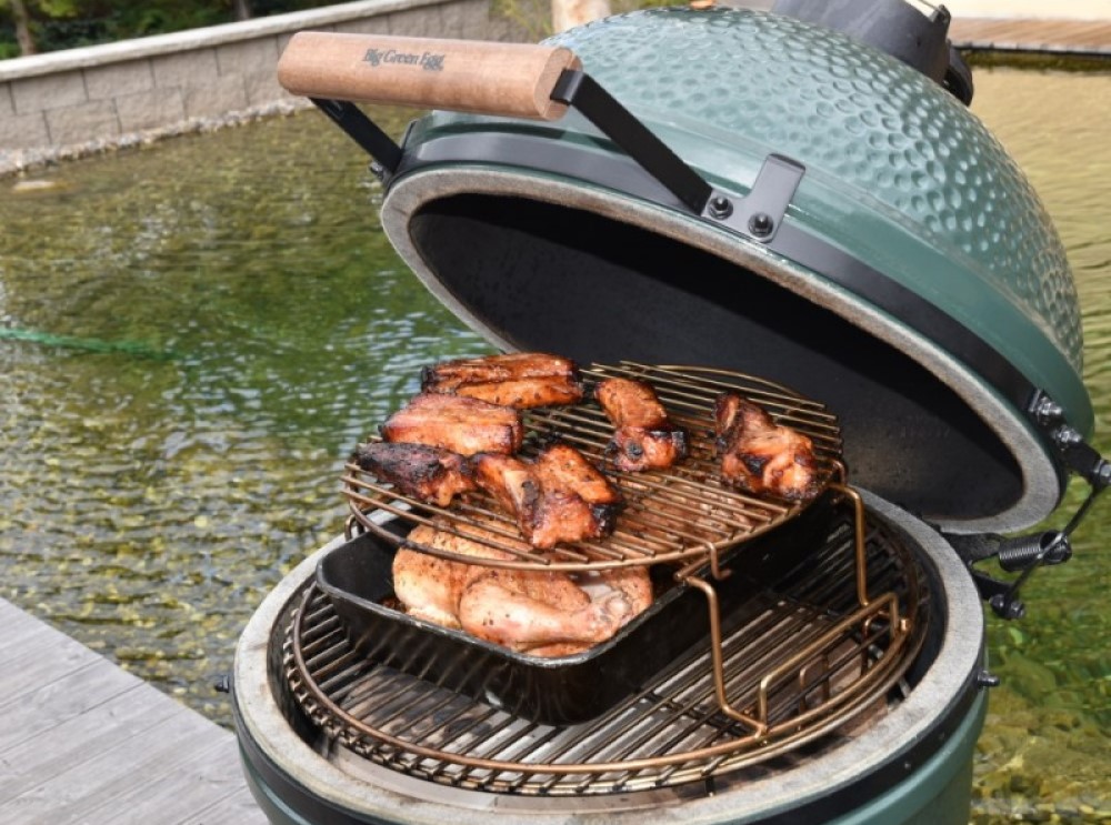 Pokud grilujete steaky a je žádoucí, aby rošt dlouho udržel vysokou teplotu, můžete nerezový vyměnit za litinový rošt, který umístíte na stejné místo v grilu - na vrchní keramický prstenec.