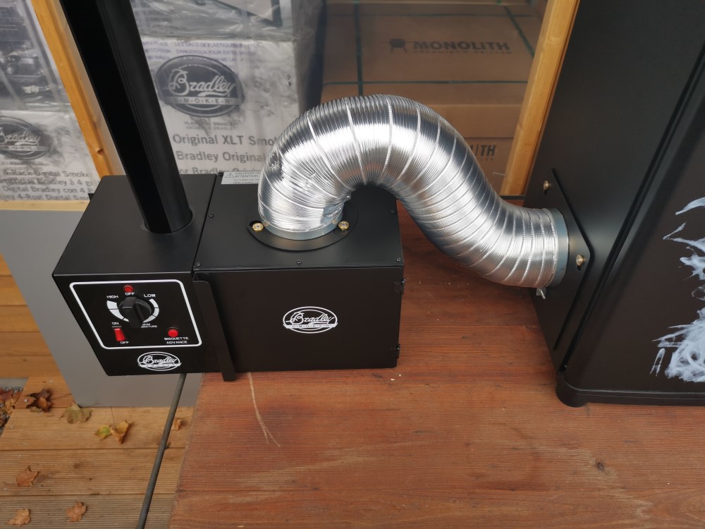 Montáž ochlazovače kouře je naprosto jednoduchá. Nejdříve generátor kouře odpojíme od udírny. Tento následně nasadíme na ochlazovač. Flexibilní trubici neboli kouřovod na ochlazovač jednoduše nasadíte a zajistíte pootočením. Na udírnu kouřovod pouze zavěsíte. Vše je snadno a rychle připraveno k uzení.