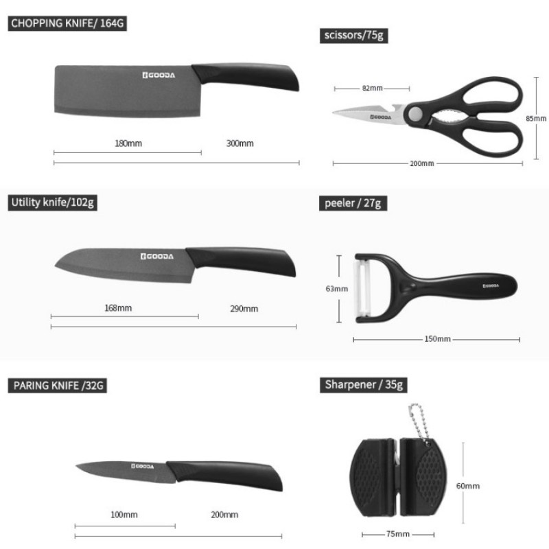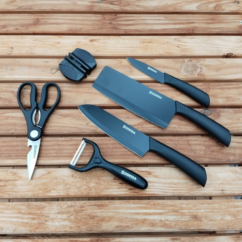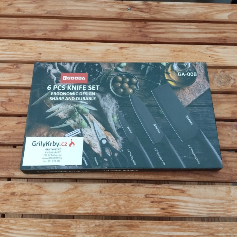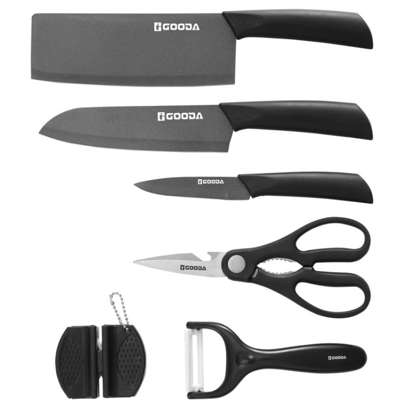 6-dílná sada kuchyňského příslušenství německého výrobce nožů Gooda v moderní černé barvě