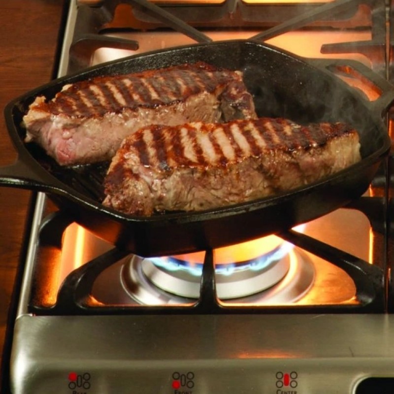 Masivní litinová grilovací pánev Lodge Yellowstone s nepřilnavým povrchem o rozměrech 26 x 26 cm