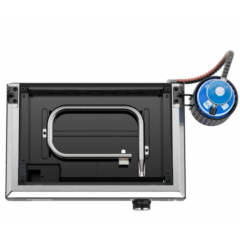 Stolní plynový gril s hladkou grilovací plochou ze smaltované litiny a grilovacím víkem