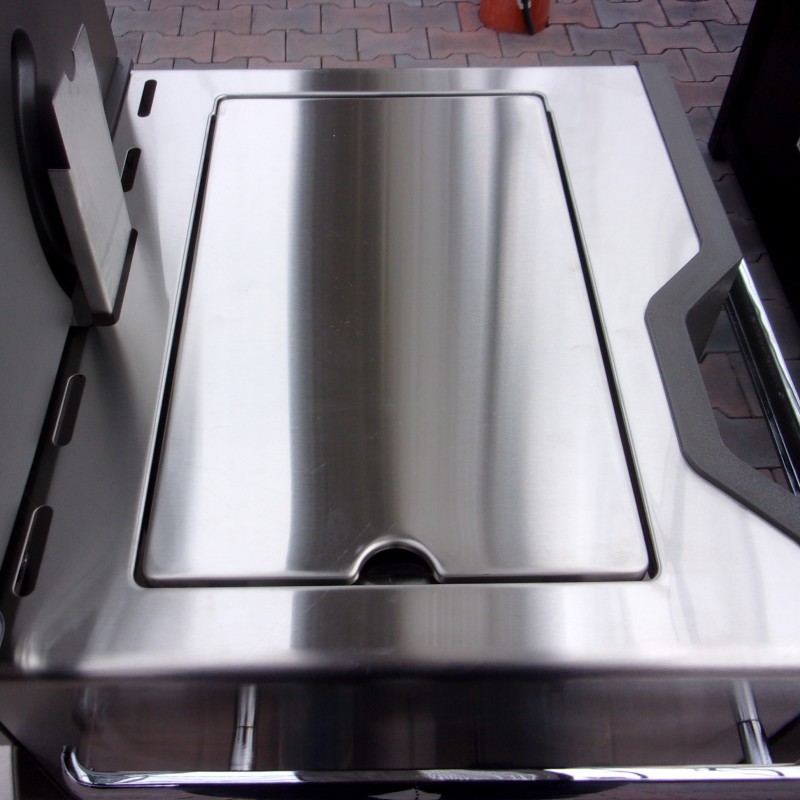 | Základní vybavení | 4 základní hořáky, 1 zadní infrahořák, 1 boční infrahořák, zásobník na led, teploměr, kolečka s pojistkou, velký úložný prostor, nerezový grilovací rošt, ohřívací rošt, osvětlení grilovací plochy, skříňka s dvoukřídlými dvířky |