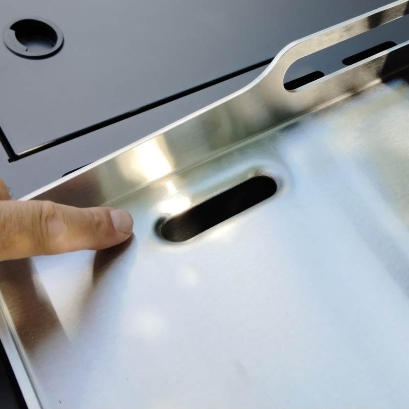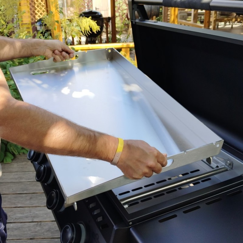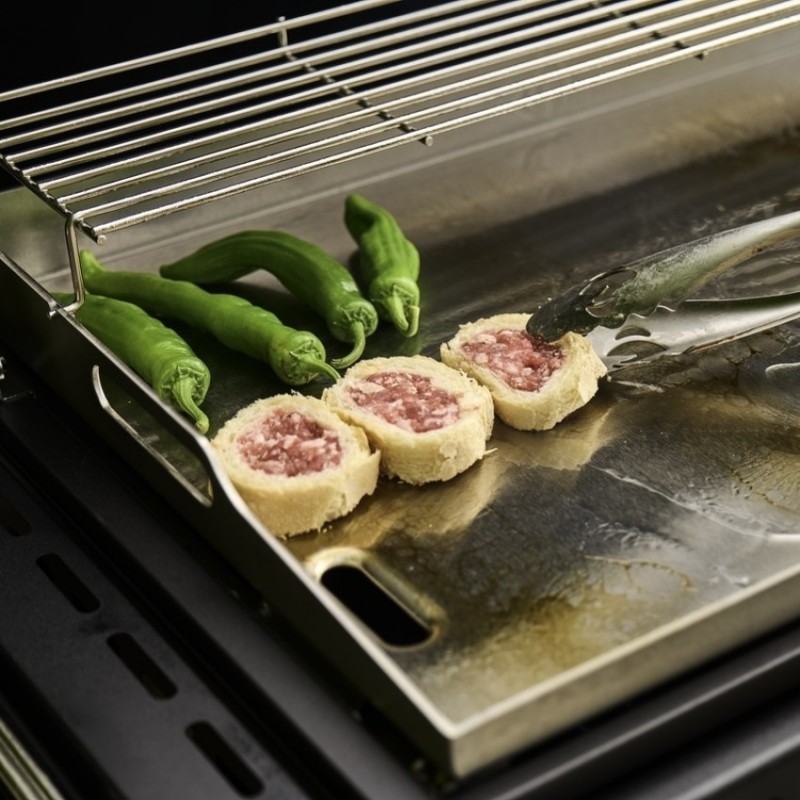| Grilovací rošt | ocelová varná deska o tloušťce 3,5 mm a rozměrech 70 x 44 cm |