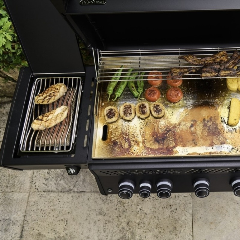 Napoleon Rogue PRO Plancha Phantom je plynový gril se 4 hořáky a boční Sizzle Zone v nadčasové černé barvě