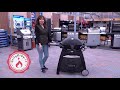 Špičkový plynový gril vsazený do vozíku má dvoudílný porcelánem smaltovaný litinový rošt o velikosti 63x45 cm.