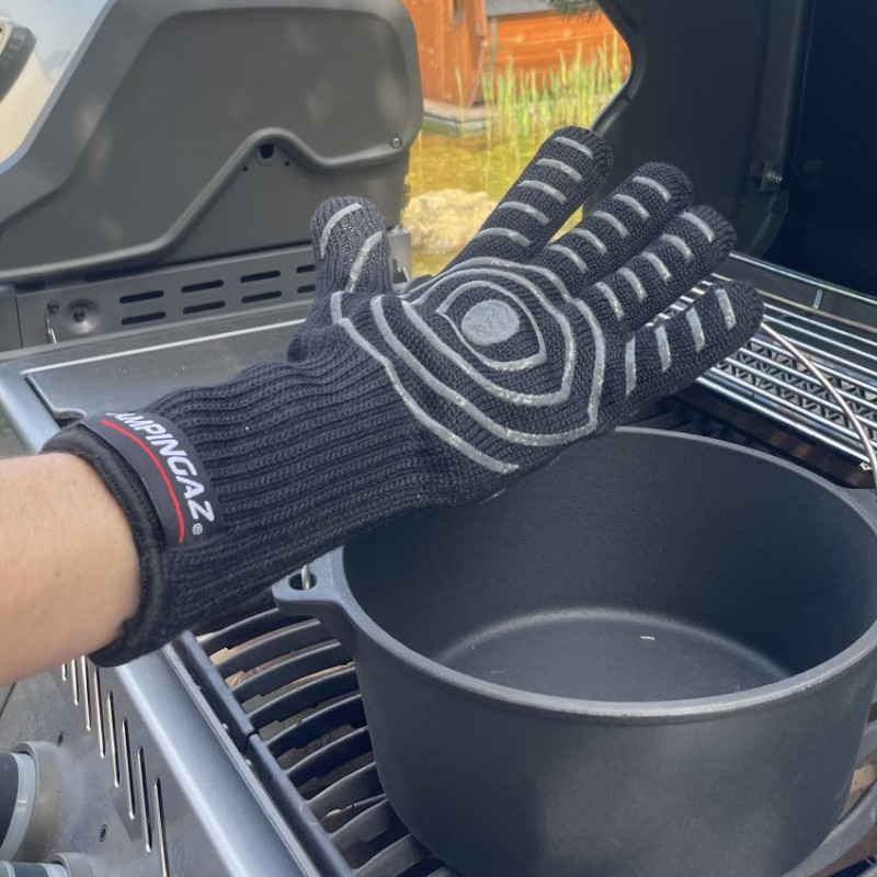 Ochranná grilovací rukavice Campingaz pro bezpečnou manipulaci s rozpáleným grilem.