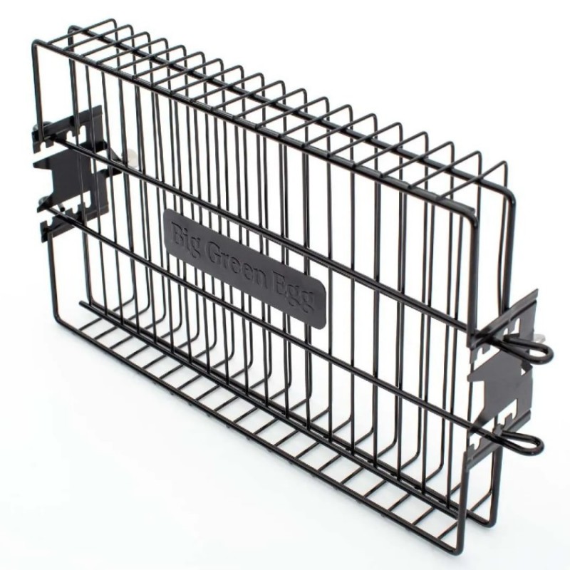 Hranatý koš na rožeň poslouží jako dokonalý pomocník při rožnění na keramických grilech Big Green Egg
