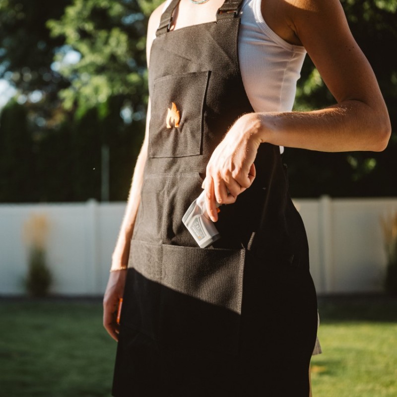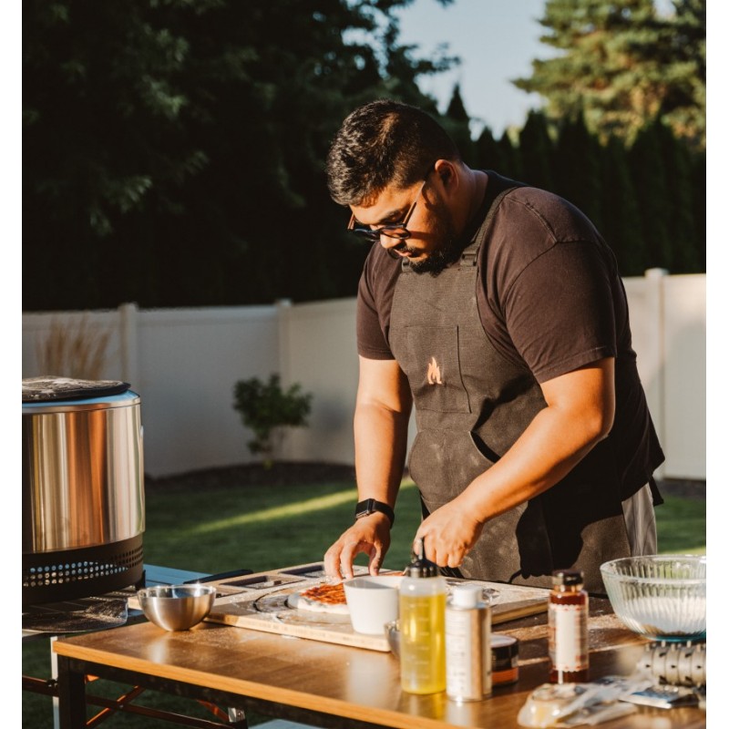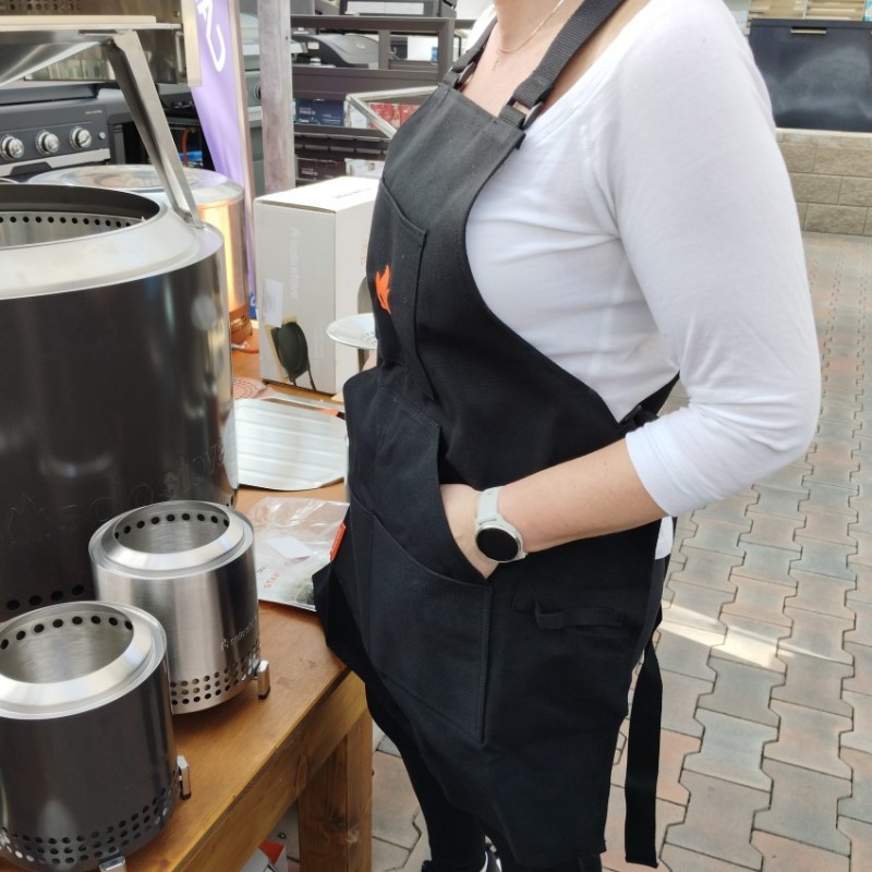 Černá kuchařská zástěra Solo Stove ochrání oblečení během vaření