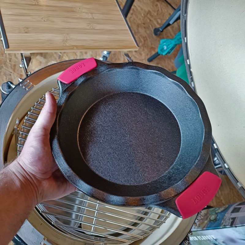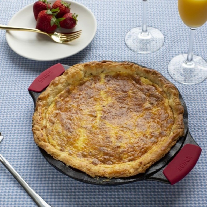 Masivní litinová forma na koláč Lodge s nepřilnavým povrchem o průměru 23 cm.
