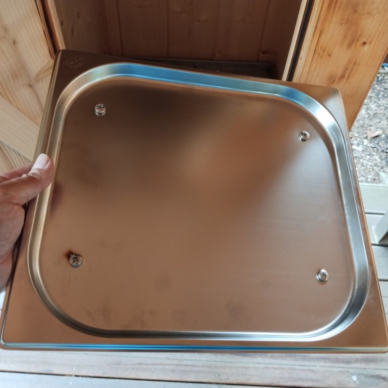 samostatná okapová miska vhodná pro umístění v udírně nad topnou spirálu 2 kW