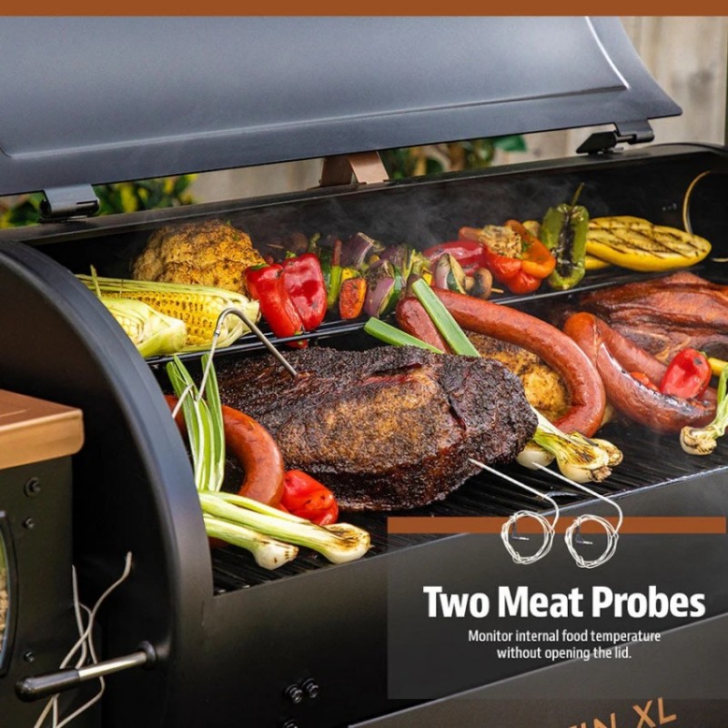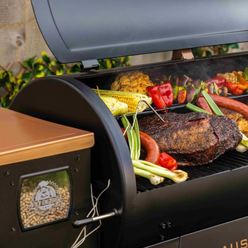 | Základní vybavení | dotykový displej, automatický podavač a zapalovač pelet, plech na odkapový tuk, kyblík na tuk, porcelánem potažené rošty, vrchní rošt, boční police s háčky na nástroje, 2 sondy do masa |