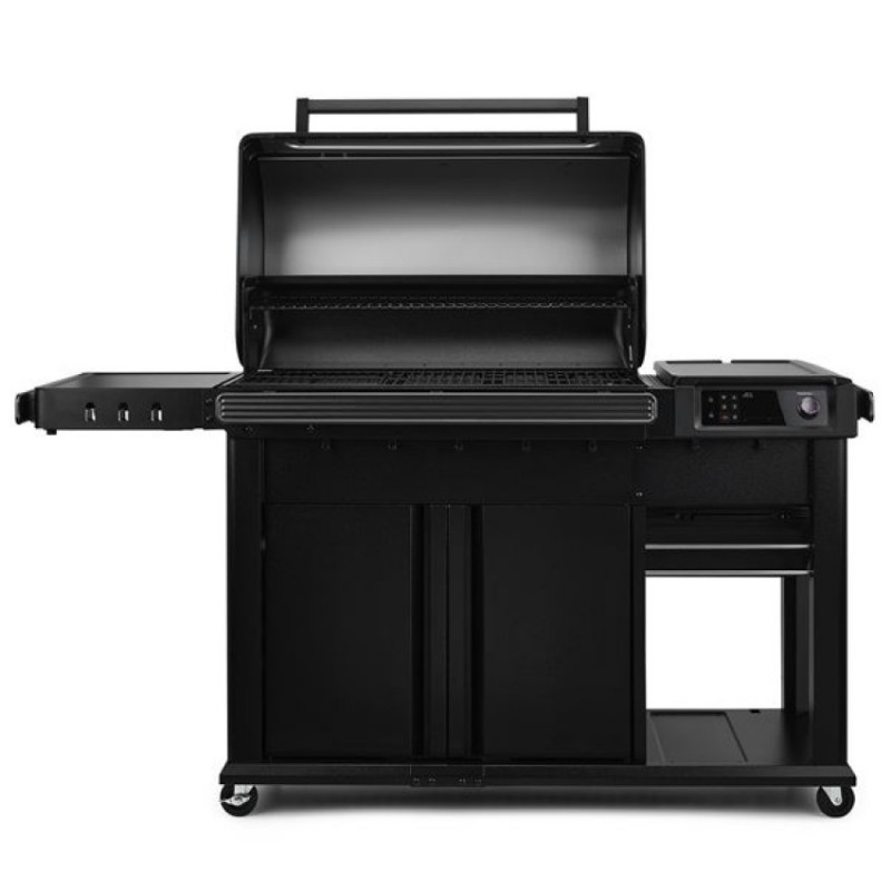 | Základní vybavení | grilovací rošty ve dvou úrovních, digitální panel s přehledným displejem, zásobník na pelety s kapacitou 11 kg a integrovaným senzorem, bezdrátová technologie WiFIRE® pro pohodlné ovládání, sonda do masa, kolečka pro snadnou manipulaci, odkládací polička s háčky a kbelík na odkapávání tuku, skříňka na odkládání příslušenství |