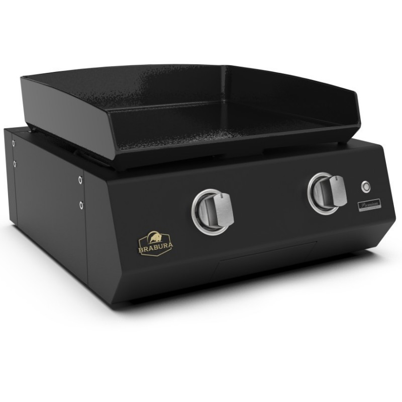 Brabura L Class Matte Black 20 Griddle je kompaktní vestavná plynová plancha, která spojuje profesionální výkon, jednoduchou údržbu a elegantní matně černý design. Smaltovaná litinová deska o tloušťce 8 mm zajišťuje rovnoměrné rozložení tepla a perfektní opečení bez připalování.