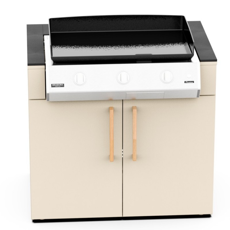 Brabura KC 100 Plancha je modul určený pro bezpečné a elegantní zabudování plynové planchy do venkovní kuchyně. Poskytuje stabilní základ, praktický úložný prostor a designové sjednocení celé sestavy.