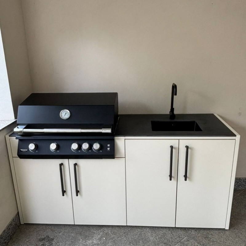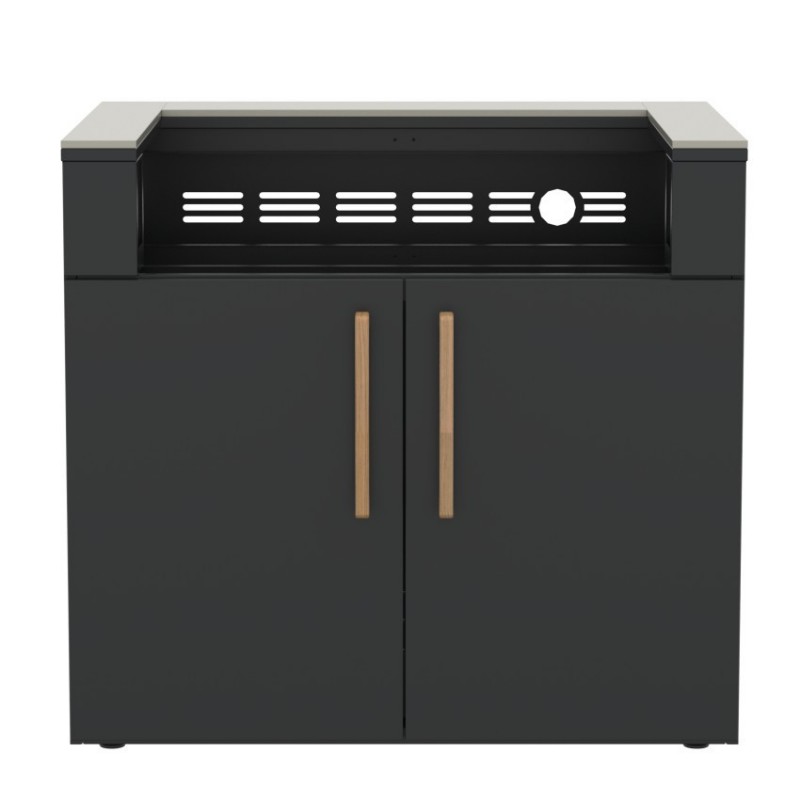 Konstrukce z nerezové oceli s práškovým lakováním Qualicoat je odolná proti korozi i náročným venkovním podmínkám. Pracovní deska z keramického materiálu Neolith dodává modulu luxusní vzhled a zároveň vysokou odolnost proti teplu, poškrábání i skvrnám.
