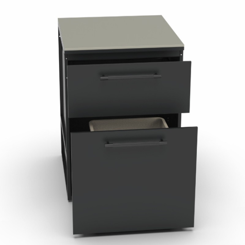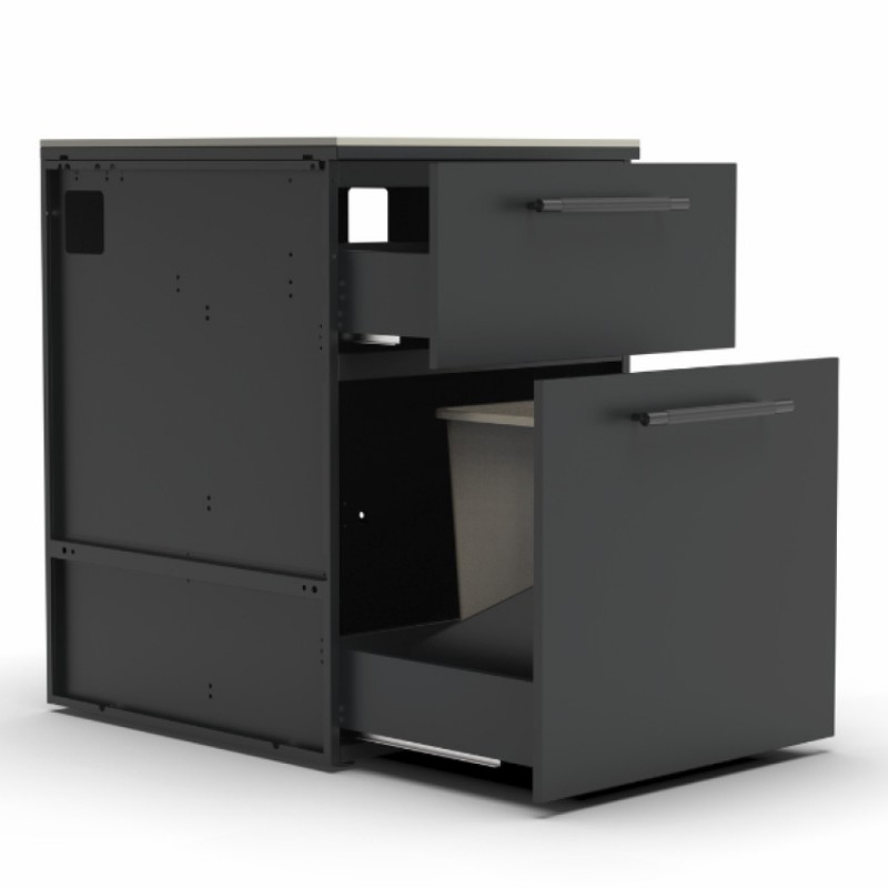 Brabura CT 60 Trash Drawers nabízí zásuvkový modul s integrovaným odpadkovým prostorem, pracovní deskou Neolith a odolnou konstrukcí pro čistou a organizovanou venkovní kuchyň.