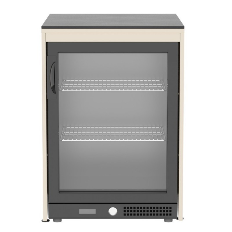 Modul Brabura CT 60 Fridge nabízí vestavnou lednici o objemu 128 l, pracovní desku z Neolithu a odolnou konstrukci pro celoroční použití ve venkovní kuchyni.