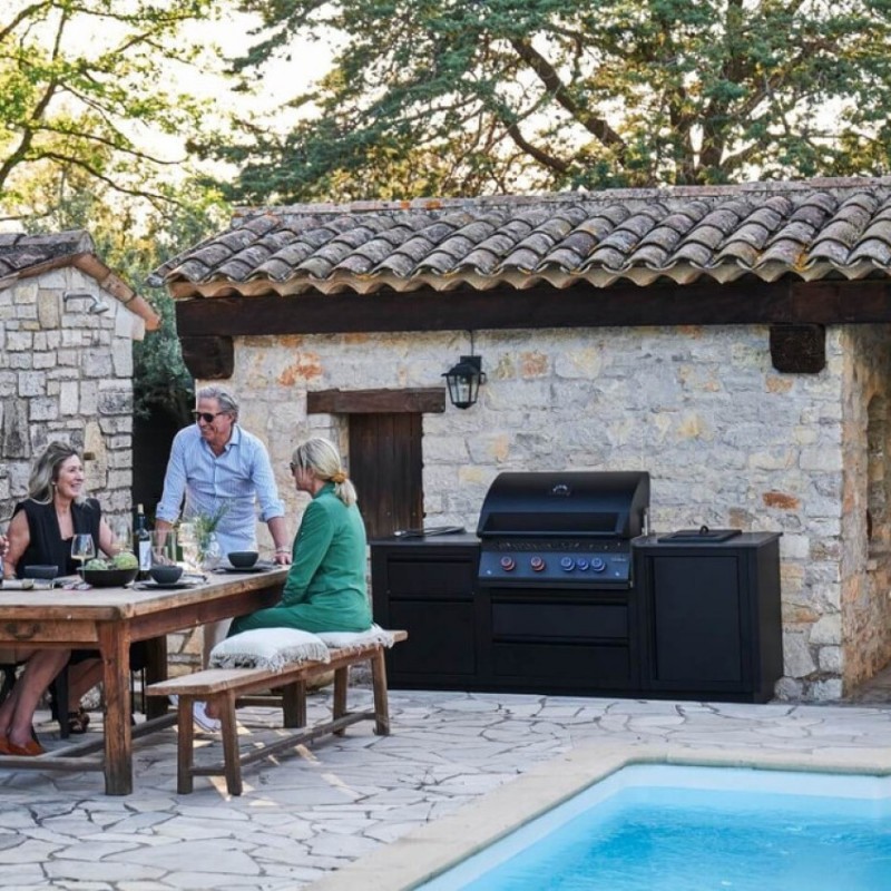 Vestavný plynový gril Napoleon BIG 32 Phantom zasazený do moderní venkovní kuchyně