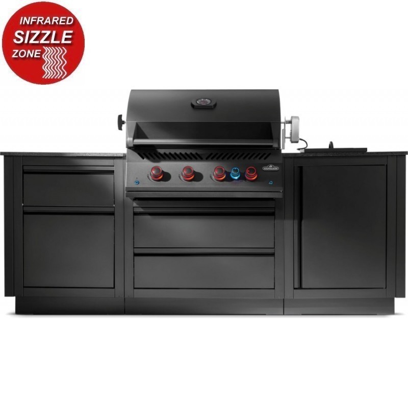 Venkovní kuchyně Napoleon BIG 32 Phantom s vestavným plynovým grilem 24,5 kW, rožněm, SIZZLE ZONE a modulární sestavou OASIS™ pro komfortní grilování doma.