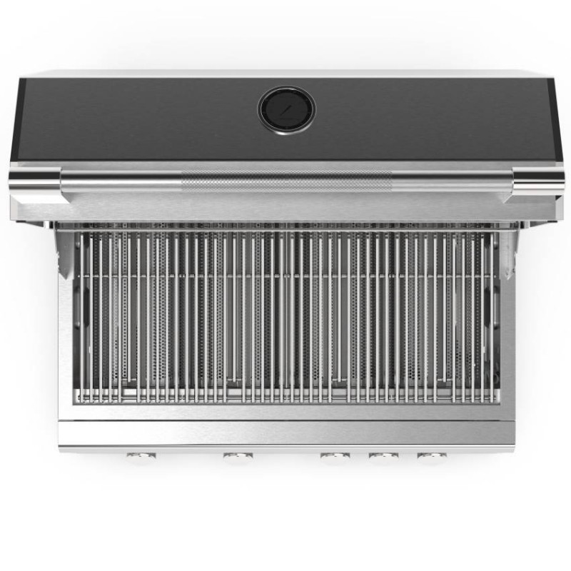 Čtyři výkonné nerezové hořáky spolu s infračerveným zadním hořákem poskytují maximální kontrolu nad teplotou i způsobem přípravy. Masivní 8–9 mm nerezové rošty s hexagonálním profilem zajišťují perfektní steakový otisk a rovnoměrné propečení.