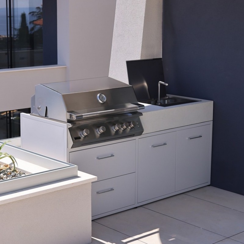 Tento model je ideální volbou pro modulární venkovní kuchyně, kde se stává klíčovým prvkem celé sestavy a umožňuje připravit kompletní menu pro 10–15 osob.