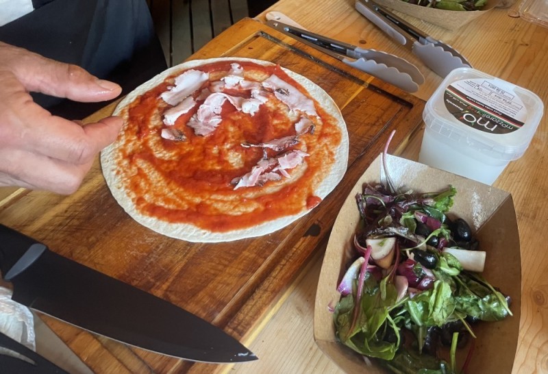 - Tortillu položte na předehřátý pizza kámen a pečte 5 – 7 minut