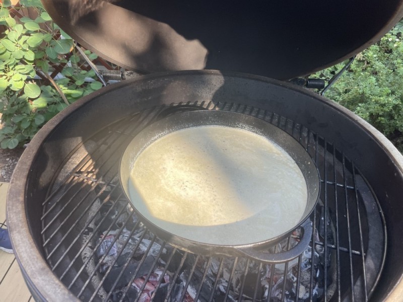 - Rozehřejte gril a na rozpálenou litinovou pánev dejte olivový olej nebo máslo.