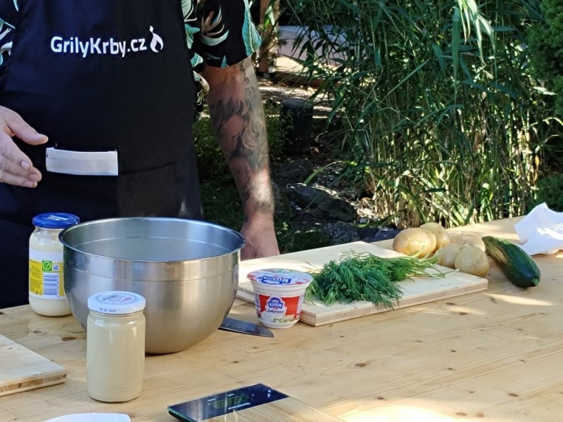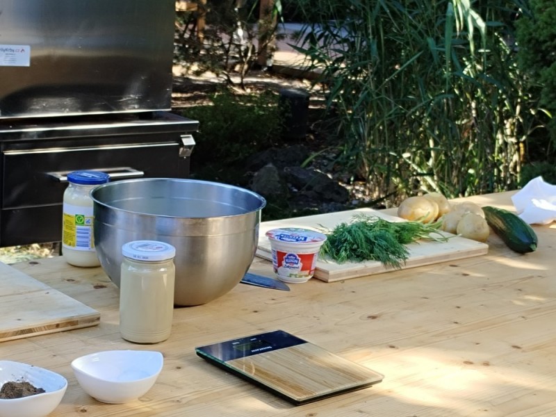 Tento upravený a odlehčený bramborový salát se skvěle hodí jako příloha: vhodná pro grilované maso, grilované ryby nebo také k uzeným rybám.