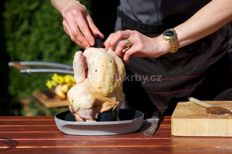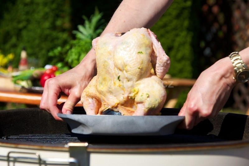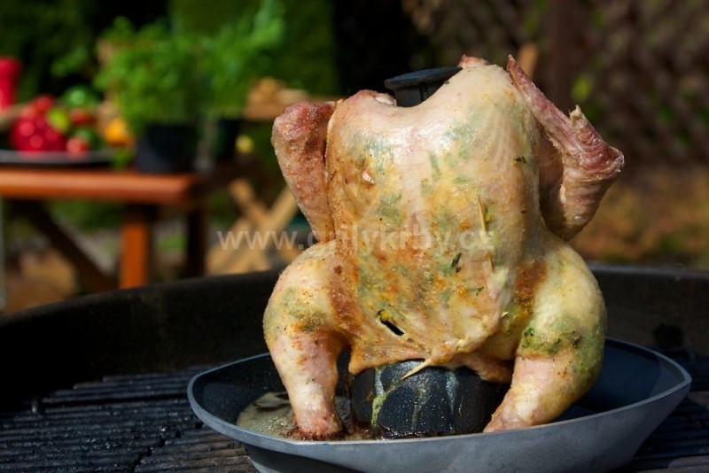 Lahodné grilované kuřátko krásně provoněné čerstvým libečkem a šťavnatým pomerančem.