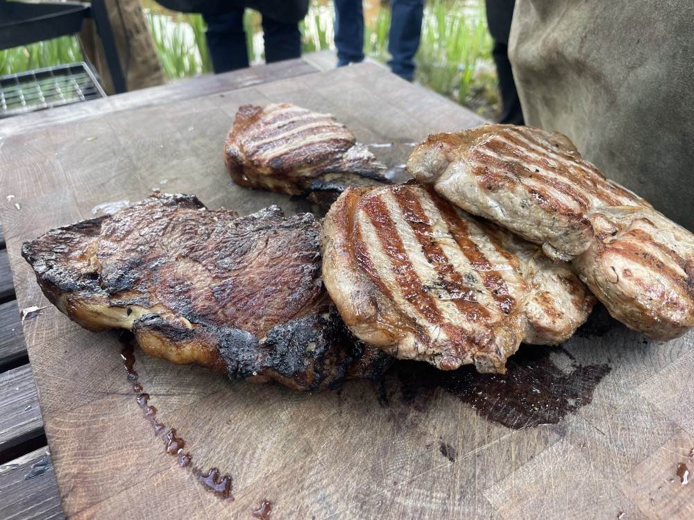 Grilované vepřové kotlety s pečenou zeleninou v ohni