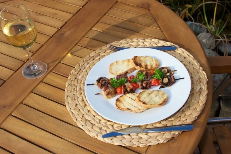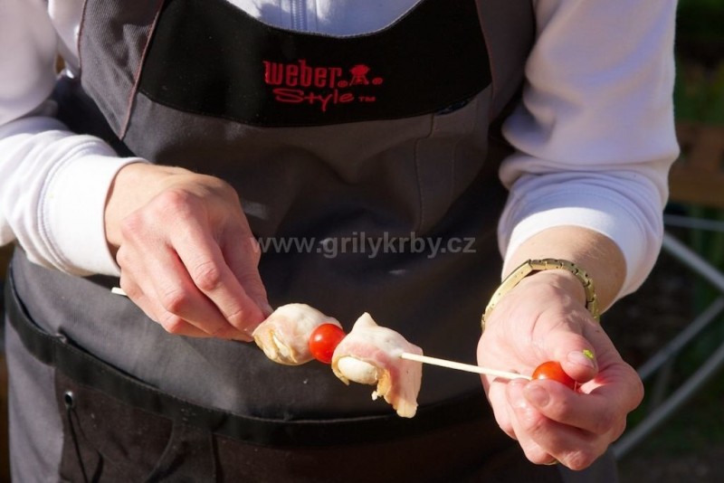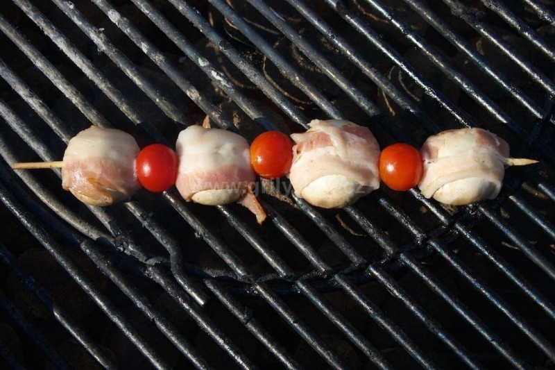 Vyzkoušejte naše lahodné grilované žampiony s anglickou slaninkou, sladkými cherry rajčátky a čerstvou červenou a žlutou kapií. Jako příloha se báječně hodí opečená bagetka pokapaná trochou olivového oleje.