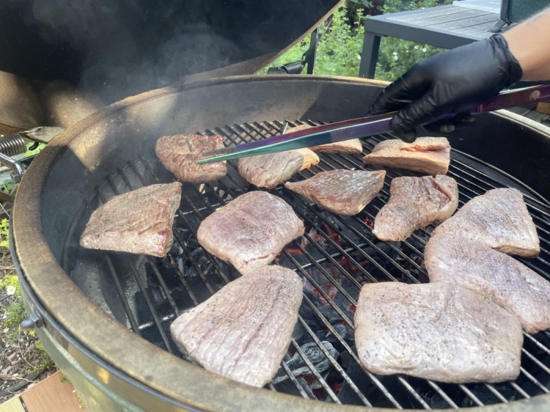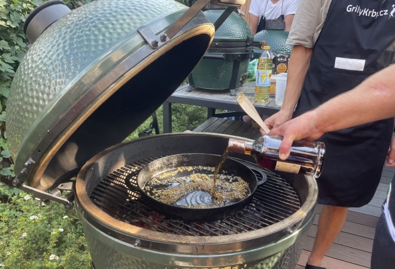 - Gril Big Green Egg předehřejeme na 230 – 250 °C pro přímé grilování.