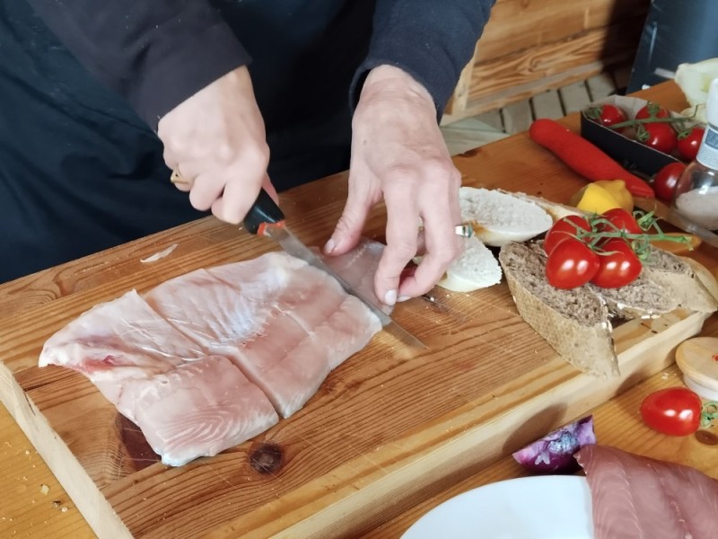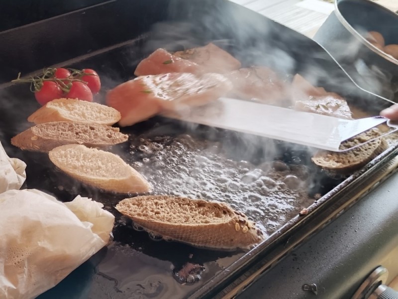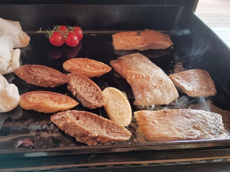 Kapr na grilu s opečenou bagetou