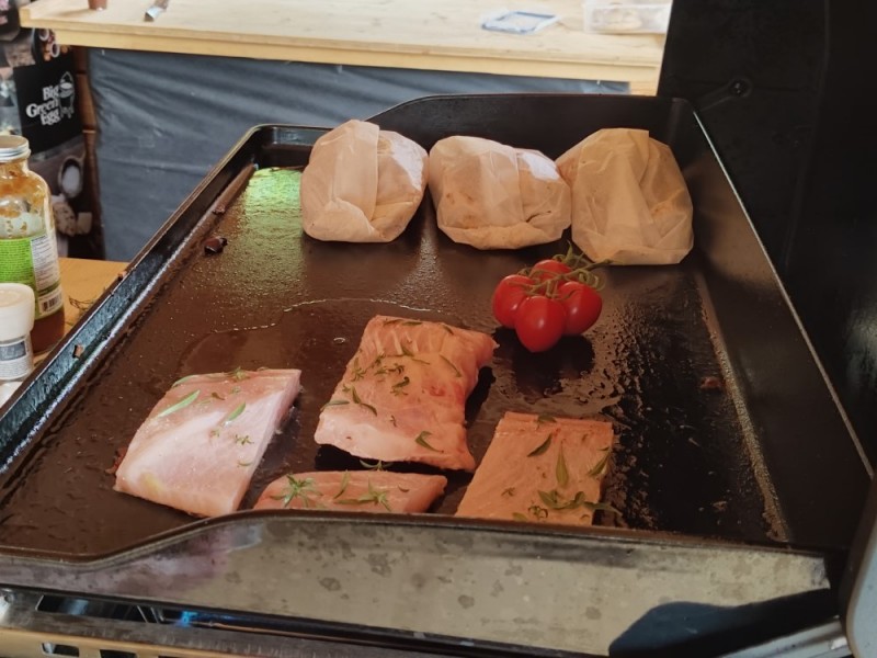 - Položíme na rozpálenou desku grilu