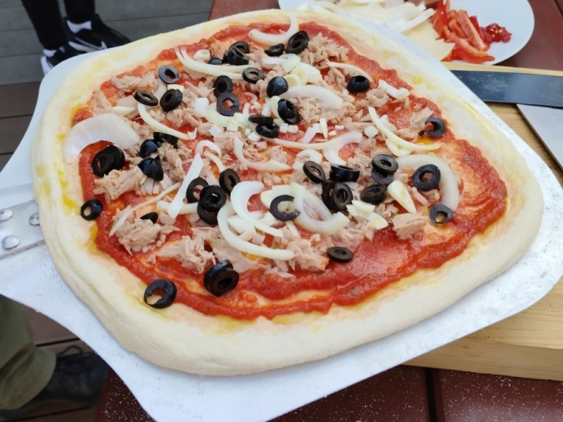 Tip: variant přísad na pizzu je nekonečné množství! My jsme použili například: tuňák ve vlastní šťávě, černé olivy, omáčka arrabbiata, sýr eidam, camembert, mozzarella, anglická slanina, pizza šunka, bazalka, paprika, rajčata, cibule a další.. Uvedené dobroty jsou ty co chutnali nám ve Vladeku. Smajlík Přejeme dobrou chuť!