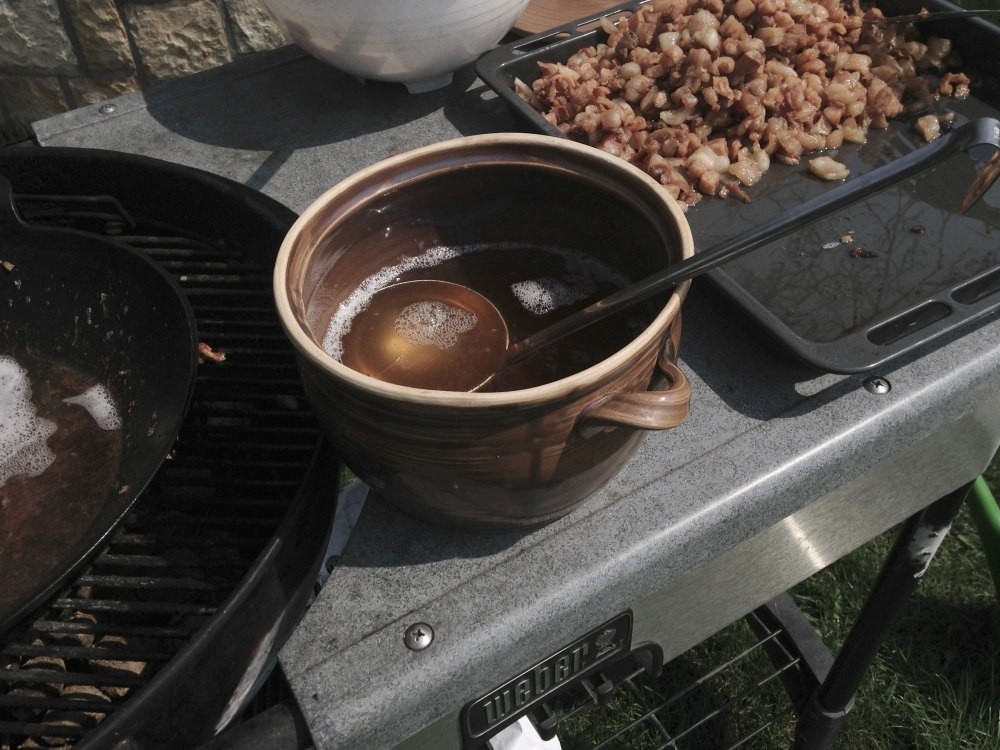 Škvaření sádla na grilu
