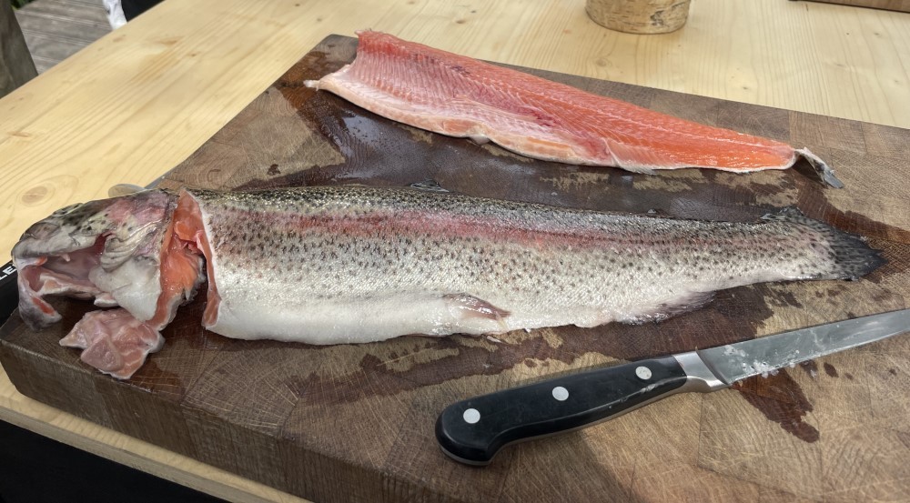 Uzený losos s kuskusovým salátem a rukolové pesto