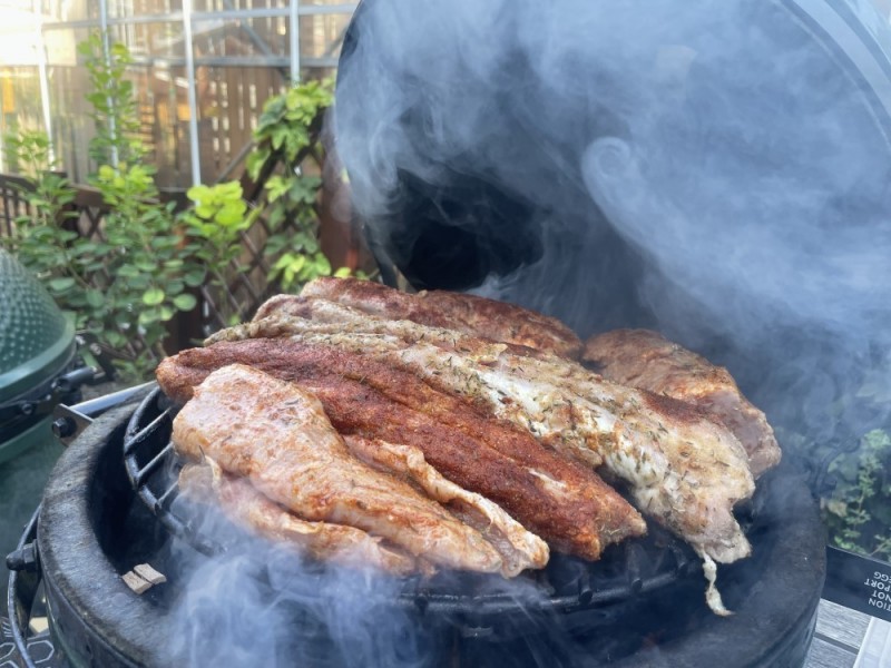 - Gril Big Green Egg rozehřejte na 70°C a přidejte convEEGtor pro nepřímé grilování.